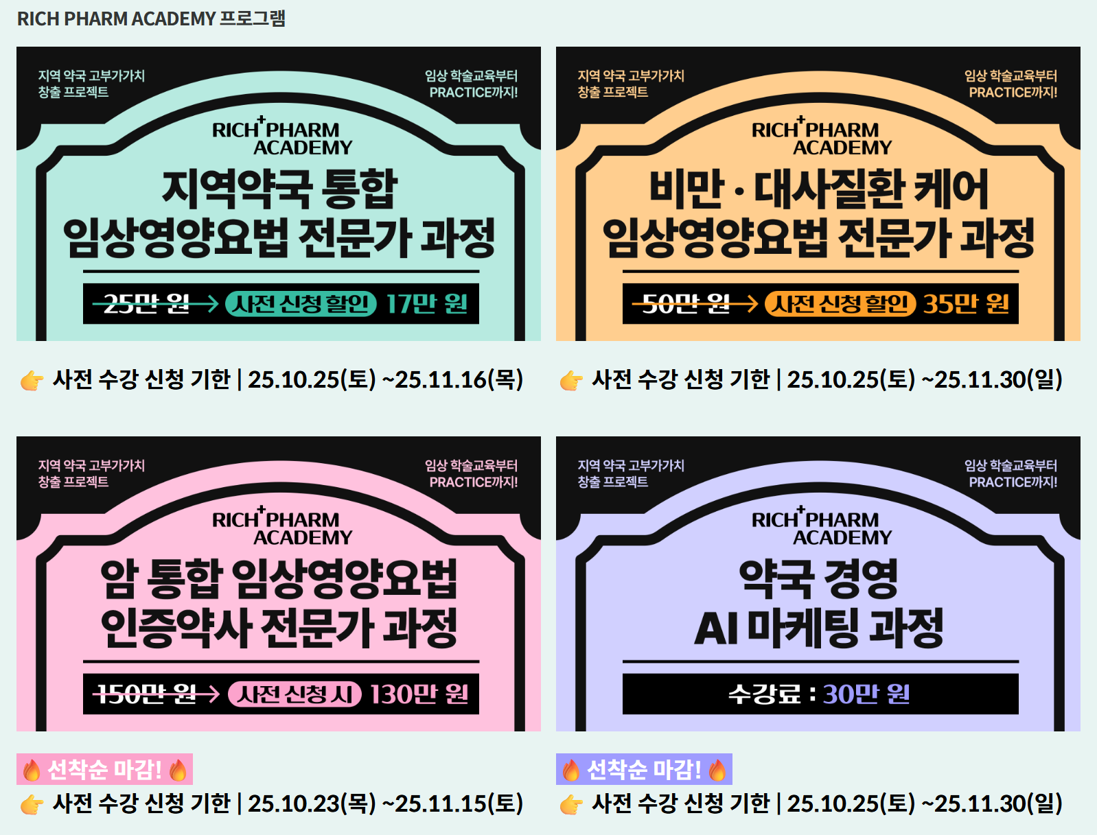 ÃÑ 4°³ °úÁ¤À¸·Î ¡ãÁö¿ª¾à±¹ ÅëÇÕ ÀÓ»ó¿µ¾ç¿ä¹ý Àü¹®°¡ °úÁ¤ ¡ãºñ¸¸¡¤´ë»çÁúȯ Äɾî ÀÓ»ó¿µ¾ç¿ä¹ý Àü¹®°¡ °úÁ¤ ¡ã¾Ï ÅëÇÕ ÀÓ»ó¿µ¾ç¿ä¹ý ÀÎÁõ¾à»ç °úÁ¤ ¡ã¾à±¹°æ¿µ AI¸¶ÄÉÆÃ °úÁ¤À¸·Î ±¸¼ºµÆ´Ù.