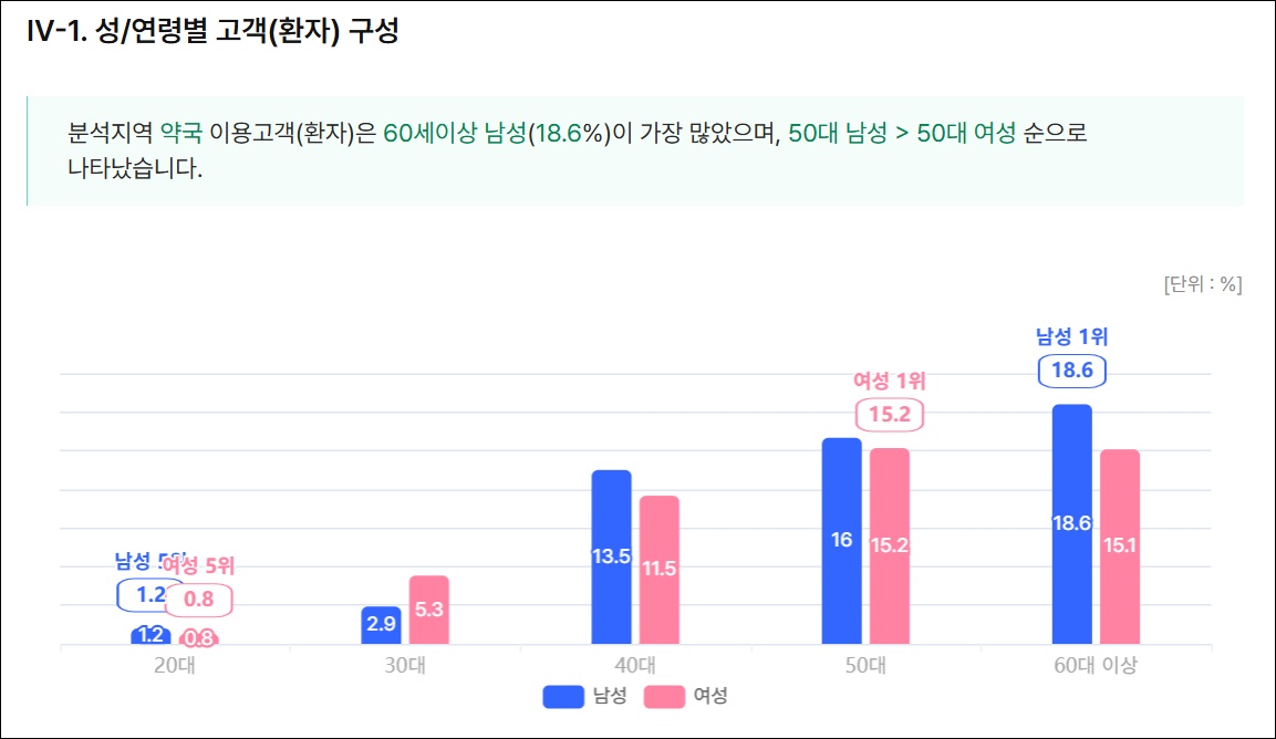 ¿©¼ºÃþÀÇ ¹æ¹®ÀÌ ¸¹¾Ò´ø ÀÌ Áö¿ª º´ÀÇ¿ø°ú´Â ´Þ¸® ¾à±¹Àº °í·É ³²¼ºÃþÀÇ ¹æ¹® ºñÁßÀÌ ³ôÀº °ÍÀ¸·Î ³ªÅ¸³ª È®¿¬ÇÑ Â÷À̸¦ µå·¯³Â´Ù.