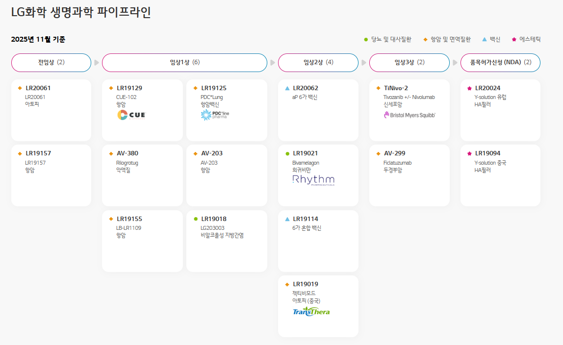 LGÈ­Çп¡ µû¸£¸é Ç×¾Ï ÆÄÀÌÇÁ¶óÀÎ Áß ¿ÃÇØ 'LR19128'°ú 'LR20011(GEN-001)'¿¡ ´ëÇÑ °³¹ßÀ» °ø½Ä Áß´ÜÇß´Ù. µÎ Èĺ¸¹°ÁúÀº °¢°¢ ÀüÀÓ»ó, ÀÓ»ó 1»ó ´Ü°è¿¡¼­ °³¹ßµÇ´ø Èĺ¸¹°ÁúÀÌ´Ù.