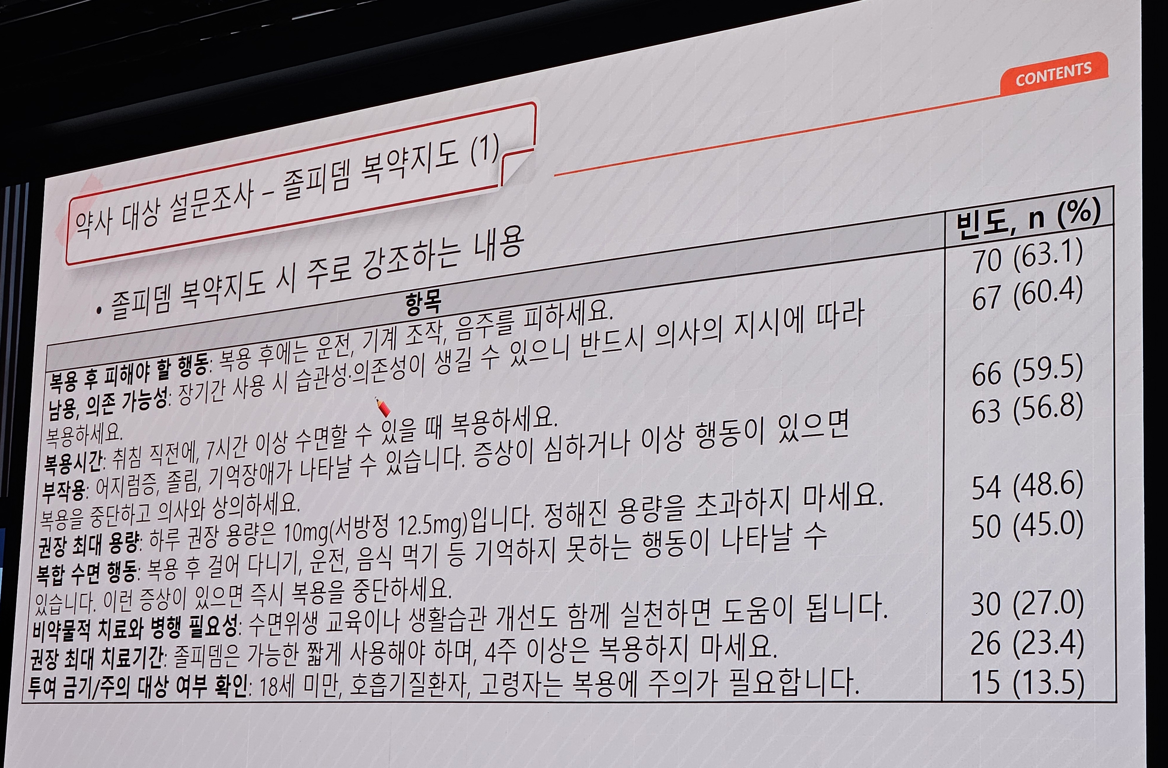 À̳¯ °èÈñ¿¬ ¾àÇйڻç(ÈÞº£À̽º R&I ¿¬±¸¼ÒÀå)´Â °­»ç·Î ³ª¼­ ȯÀÚ, ¾à»ç¸¦ ´ë»óÀ¸·Î ÁøÇàÇÑ Á¹Çǵ© ó¹æ, º¹¾àÁöµµ¿¡ ´ëÇÑ ÀÎ½Ä °ü·Ã ¼³¹®Á¶»ç °á°ú¸¦ ¹ßÇ¥Çϰí, ¾à»ç°¡ Á¹Çǵ© °ü·Ã ó¹æ ÁßÀç¿Í º¹¾àÁöµµ¿¡ Àû±Ø ³ª¼­¾ß ÇÒ ÀÌÀ¯¸¦ ¼³¸íÇß´Ù.