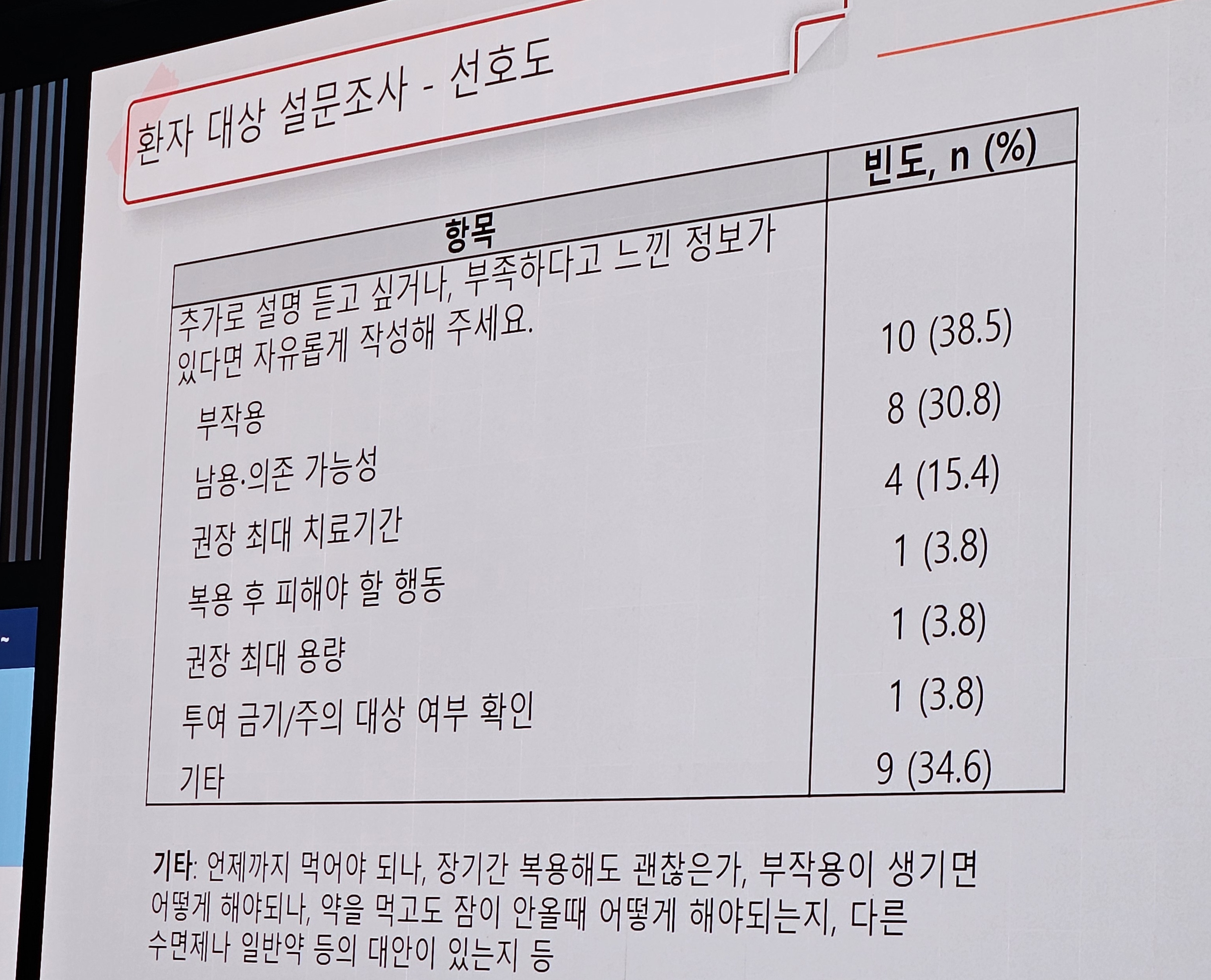 ¾à±¹¿¡¼­ º¹¾àÁöµµ¸¦ ¹ÞÀ» ¶§ Ãß°¡·Î ¼³¸í µè°í ½Í°Å³ª ºÎÁ·ÇÏ´Ù°í ´À³¤ Á¤º¸·Î´Â ¡¯ºÎÀÛ¿ë(38.5%)¡®ÀÌ °¡Àå ¸¹¾Ò°í, ¡¯³²¿ë¡¤ÀÇÁ¸ °¡´É¼º(30.8%)¡®, ¡¯±ÇÀå ÃÖ´ë Ä¡·á±â°£(15.4%), ¡®Åõ¿© ±Ý±â/ÁÖÀÇ ´ë»ó ¿©ºÎ È®ÀÎ(3.8%) ¼øÀ̾ú´Ù.