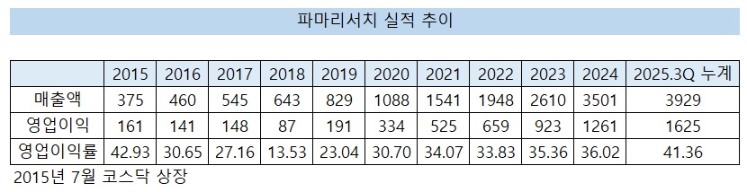 ÆÄ¸¶¸®¼­Ä¡ ½ÇÀûÀº 2015³â 7¿ù ÄÚ½º´Ú »óÀå ÈÄ °í°øÇàÁøÀÌ´Ù. ¸ÅÃâÀº 2015³â 375¾ï¿ø¿¡¼­ 2024³â 3501¾ï¿øÀ¸·Î 10¹è °¡·® Áõ°¡Çß´Ù.