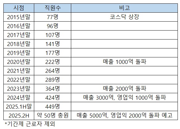 ÀÌÈÄ 2020³â¸» 222¸í, 2021³â¸» 264¸í, 2022³â¸» 289¸í, 2023³â¸» 364¸í, 2024³â¸» 424¸í, ¿Ã »ó¹Ý±â¸» 449¸í±îÁö Áõ°¡Çß´Ù.
