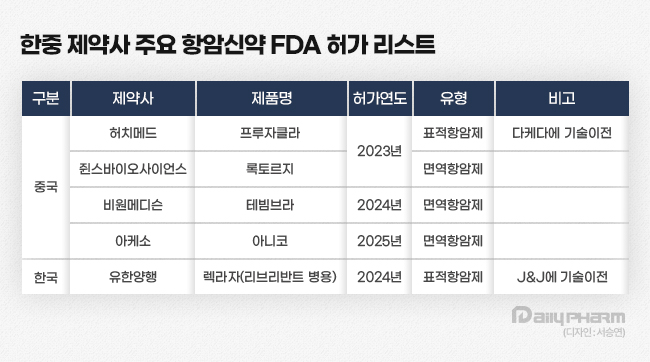 ¶Ç ´Ù¸¥ Áß±¹ ¹ÙÀÌ¿ÀÅØÀÎ ¾ÆÄɼÒ(Akeso)´Â PD-1/VEGF ÀÌÁßÇ×ü '¾Æ´ÏÄÚ(ÆæÇ®¸¿)'¸¦ °³¹ßÇØ ¿ÃÇØ FDA ½ÂÀÎÀ» ȹµæÇß´Ù. ÀÌÁßÇ×ü´Â ±Û·Î¹ú Á¦¾à»çµéµµ Ä¡¿­ÇÏ°Ô °æÀï ÁßÀÎ °í³­µµ Ç÷§Æû ±â¼ú·Î, Áß±¹ ±â¾÷ÀÌ ÇØ´ç ¿µ¿ª¿¡¼­µµ ¹Ì±¹ ½É»ç Æ®·¢¿¡ ¿Ã¶ó »ó¿ëÈ­±îÁö ÀÌ·ï³½ °ÍÀº Àǹ̰¡ Å©´Ù.