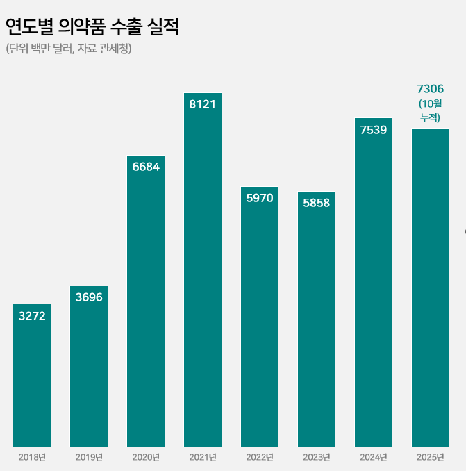[µ¥Àϸ®ÆÊ=±èÁø±¸ ±âÀÚ] ±¹»ê ÀǾàǰÀÇ ´©Àû ¼öÃâ¾×ÀÌ 10Á¶¿øÀ» µ¹ÆÄÇß´Ù. 10¿ù±îÁö ÀǾàǰ ¼öÃâ¾×Àº Àü³â´ëºñ 18% Áõ°¡, È£Á¶¸¦ À̾´Â ¸ð½ÀÀÌ´Ù.