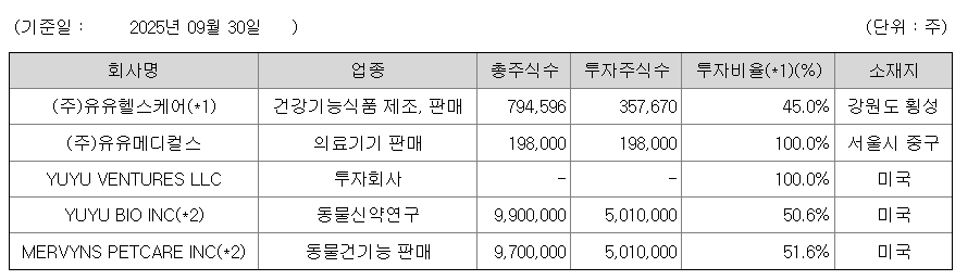 À¯À¯º¥Ã³´Â À¯À¯¹ÙÀÌ¿À(Yuyu Bio)¿Í ¸Óºó½ºÆêÄɾî(Mervyn's Petcare) 2°³ ÀÚȸ»ç¸¦ °ü¸®ÇÑ´Ù.