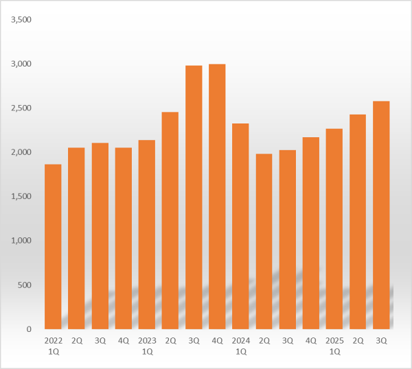 ºê·Î¸á¶óÀΠ󹿾×Àº Áö³­ÇØ 3ºÐ±â 20¾ï¿øÀ¸·Î Àü ºÐ±âº¸´Ù 2.1% Áõ°¡ÇÑ ÀÌÈÄ ¿ÃÇØ 3ºÐ±â±îÁö 5ºÐ±â ¿¬¼Ó »ó½Â¼¼¸¦ Áö¼ÓÇß´Ù. ¿ÃÇØ 3ºÐ±â 󹿾×Àº ÀÛ³â 2ºÐ±âº¸´Ù 2ºÐ±â 20¾ï¿ø¿¡¼­ 3ºÐ±â¿¡ ¾ï¿ø¿¡¼­ 2ºÐ±â¿¡ 30.0% È®´ëµÆ´Ù.