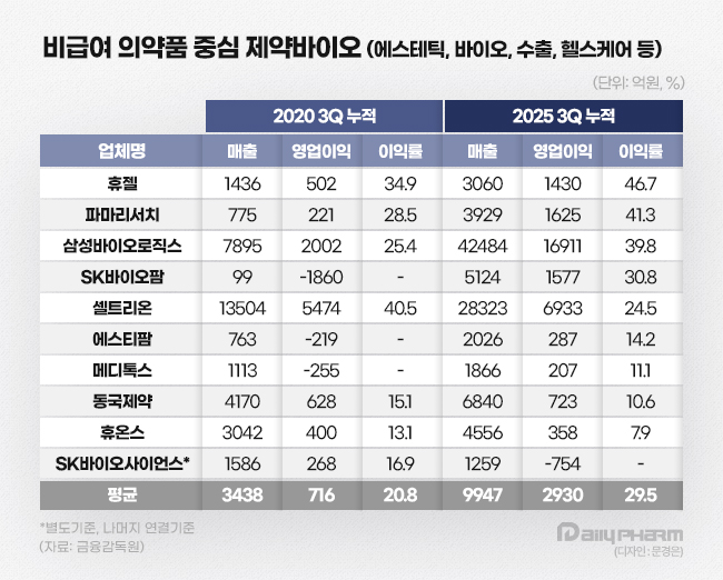 ±ÝÀ¶°¨µ¶¿ø¿¡ µû¸£¸é ±¹³» ÁÖ¿ä »óÀå Á¦¾à¹ÙÀÌ¿À ±â¾÷ÀÇ 2020³â°ú 2025³â 3ºÐ±â ´©Àû ½ÇÀûÀ» ºñ±³ÇÑ °á°ú ºñ±Þ¿© ÀǾàǰ Á᫐ ±â¾÷Àº ¾ÐµµÀûÀÎ ¼ºÀå¼¼¸¦ ±â·ÏÇÑ ¹Ý¸é ±Þ¿© ÀǾàǰ Á᫐ Á¦¾à»ç´Â ¼öÀͼºÀÌ Å©°Ô ÈÄÅðÇÑ °ÍÀ¸·Î µå·¯³µ´Ù.