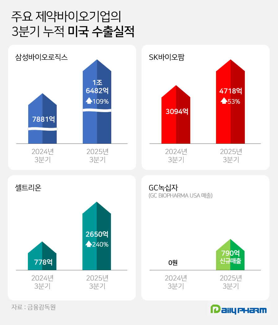 ƯÈ÷ ¹Ì±¹À¸·ÎÀÇ ¼öÃâ½ÇÀûÀÌ Å« ÆøÀ¸·Î ´Ã¾ú´Ù. »ï¼º¹ÙÀÌ¿À·ÎÁ÷½º´Â 1³â »õ ¹Ì±¹À¸·ÎÀÇ ¼öÃâ½ÇÀûÀÌ 2¹è ÀÌ»ó, ¼¿Æ®¸®¿ÂÀº 3¹è ÀÌ»ó °¢°¢ Áõ°¡Çß´Ù. ¹Ì±¹ Á¤ºÎÀÇ °ü¼¼ ºÎ°ú ¿ì·Á¿¡ ´ëºñÇØ ÇöÁö¿¡ Àç°í¸¦ È®º¸ÇصηÁ´Â ¿òÁ÷ÀÓÀÌ µÎµå·¯Á³±â ¶§¹®À̶ó´Â ºÐ¼®ÀÌ´Ù.