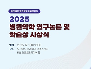 [µ¥Àϸ®ÆÊ=±èÁöÀº ±âÀÚ] Àç´Ü¹ýÀÎ º´¿ø¾àÇб³À°¿¬±¸¿ø(ÀÌ»çÀå Á¤°æÁÖ, ¿øÀå ¹Î¸í¼÷)Àº ¿À´Â 12¿ù 1ÀÏ ¿ÀÈÄ 6½Ã 30ºÐ ¿ÀÅ©¿ìµå ÇÁ¸®¹Ì¾î ÄÚ¿¢½º¼¾ÅÍ 5Ãþ ¿ÀÅ©&ÇÁ¸®¹Ì¾î·ë¿¡¼­ ¡®2025 º´¿ø¾àÇבּ¸³í¹® ¹× Çмú»ó ½Ã»ó½Ä¡¯À» ÁøÇàÇÑ´Ù.