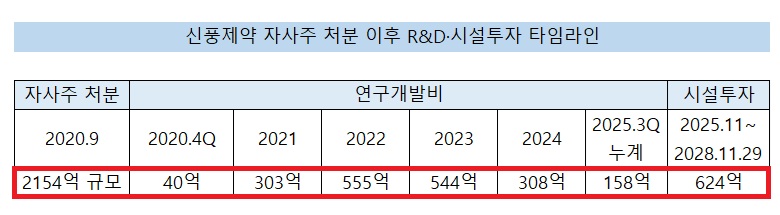 [µ¥Àϸ®ÆÊ=À̼®ÁØ ±âÀÚ] ½ÅdzÁ¦¾àÀÌ 2020³â ÀÚ»çÁÖ ºí·Ïµô ÀÌÈÄ 5³â°£ ¾à 2500¾ï¿øÀ» R&D¿Í ½Ã¼³ÅõÀÚ¿¡ ÅõÀÔÇß´Ù. ºí·Ïµô·Î È®º¸ÇÑ 2154¾ï¿øÀ» ¡°¿¬±¸°³¹ß°ú ¼³ºñ È®Ãæ¿¡ ¾²°Ú´Ù¡±´ø ¾à¼ÓÀ» ½ÇÁ¦ ÁýÇàÇÑ ¼ÀÀÌ´Ù. ´ç½Ã Á¦±âµÆ´ø ÀÚ»çÁÖ ¡®°íÁ¡ ¸Åµµ¡¯ ³í¶õµµ Á¶¿ëÈ÷ »ç¶óÁö°í ÀÖ´Ù.