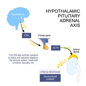 1)ÄÚ¸£Æ¼¼Ö Á¶Àý: ¸¸¼º ½ºÆ®·¹½º´Â ÄÚ¸£Æ¼¼Ö ¼öÄ¡¸¦ ºñÁ¤»óÀûÀ¸·Î ³ôÀ̰ųª (Ãʱâ), °í°¥½ÃÄÑ (Èıâ) HPA Ãà ±â´ÉºÎÀü (¹ø¾Æ¿ô)À» À¯¹ßÇÑ´Ù. È«°æÃµÃßÃâ¹°Àº ½ºÆ®·¹½º·Î ÀÎÇÑ ÄÚ¸£Æ¼¼ÖÀÇ ±Þ°ÝÇÑ º¯µ¿À» ¾ïÁ¦Çϰí HPA ÃàÀÇ ¹Î°¨µµ¸¦ Á¶ÀýÇÏ¿© Ç×»ó¼ºÀ» À¯ÁöÇÑ´Ù.