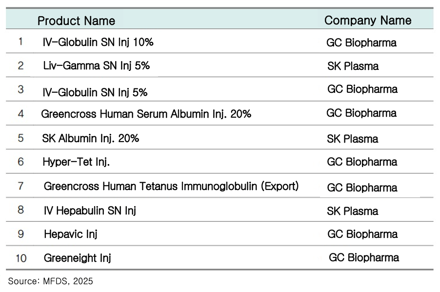 Exports were largely driven by GC Pharma’s plasma-derived product Alyglo. In fact, among the top exported plasma-derived products in 2024, IV-Globulin SN Inj 10% and IV-Globulin SN Injection 5% ranked first and third, respectively.