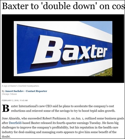 회사 측은 앞서 10월 말에도 "연말까지 1400명의 직원을 줄이거나 비생산직의 급여를 5%가량 줄이겠다"는 계획을 알렸다. 인력감축 시 연간 1억 3000만 달러의 비용을 절감할 수 있다는 계산으로, 당시 일리노이 북부지역에서 고용된 박스터 직원은 약 4800명이었다.