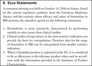 유럽크론병및대장염학회(ECCO)가 7일 크론병및대장염학회지(Journal of Crohn's and Colitis)에 실린 성명서를 통해 "염증성장질환(IBD) 환자들에게 바이오시밀러 사용을 권고한다"는 입장을 밝힌 것.