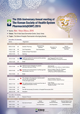 병원약사회는 창립 35주년을 맞아 유럽병원약사회장 초청강의를 비롯해 미국, 일본, 중국의 노인약료 전문가와 싱가폴, 인도약사를 초대했으며, 약 50여명의 해외 병원약사들이 참석할 예정이다.