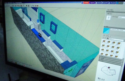 "밖에서 보기에 입구가 작아 작은 약국으로 보이지만, 꽤 넓은 공간이라 공간 분할을 신경썼습니다. 구글에서 나오는 '스케치업'은 무료로 쓸 수 있고 일반인도 쉽게 도면을 그릴 수 있어요. 이 프로그램을 이용해 이런저런 방법을 고민했죠.
