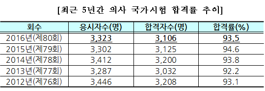 올해 새내기 의사 3106명이 배출됐다. 의사 국가시험 합격률은 93.5%다.