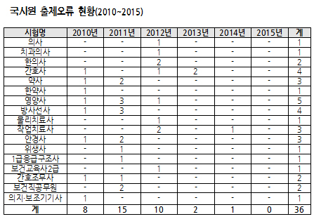 - 남인순 의원 지적, 출제오류도 2010년 이후 총 36건 발생