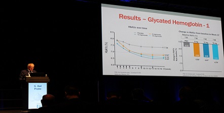 구연발표는 공동연구자인 스테파노 델 프라토(Stefano Del Prato) 교수(이탈리아 피사대학교 내분비학과)가 진행했다. 발표내용에 따르면, 제2형 당뇨병 환자 209명을 대상으로 16주동안 에페글레나타이드의 8mg, 12mg, 16mg를 각각 투여한 환자군 모두위약군 대비 우수한 혈당조절 능력(HbA1c가 7% 이하로 감소) 및체중감소 효과가 확인됐다.