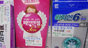 판매빈도가 높은 일반약에는 제품마다 복용방법을 적어 스티커 작업을 해놓았다. 보는 환자도 편하고 판매하는 약사도 편리한 노하우다.