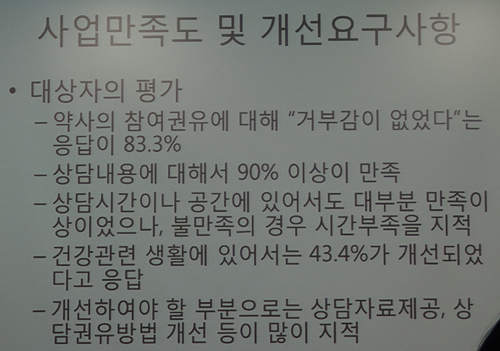 B구약사회장도 "사업에 대한 홍보와 프로그램 일부 개선 등을 넘어 보건소, 지역 약사회, 약국 등 사업주체 간 역할 등이 재조명될 필요가 있다"며 "특히 참여 약국의 인센티브 조정 등은 시급한 과제"라고 전했다.