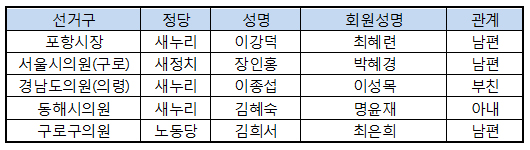 ◆약사가족 당선인 = 기초단체장 1명, 광역의원 2명, 기초의원 2명 등 총 5명을 배출했다.