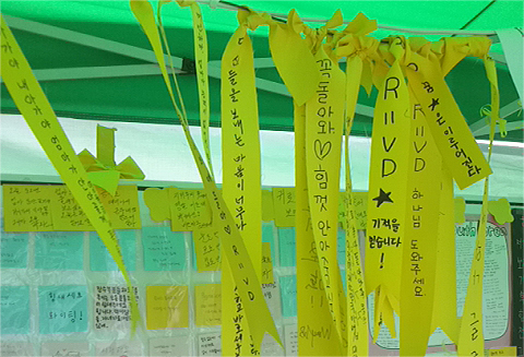 그럼 가족들이 그 내용을 확인하러 직접 팽목항에 가족대기석으로 오십니다.