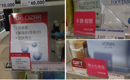 일부 약국은 중국어로 된 POP를 자체적으로 제작하는가 하면 한 약국 체인 업체는 강남 지역 약국들을 대상으로 관광객 대상 텍스 프리(TAX FREE) 제도를 운영 중이다.