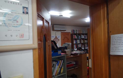 신기한 풍경에 어리둥절하고 있을 때쯤, 약국의 매대 안을 둘러보니 곳곳에서 영어 서적과 학습지가 발견된다. 이 약국, 그리고 김 약사의 정체가 더 궁금해진다.