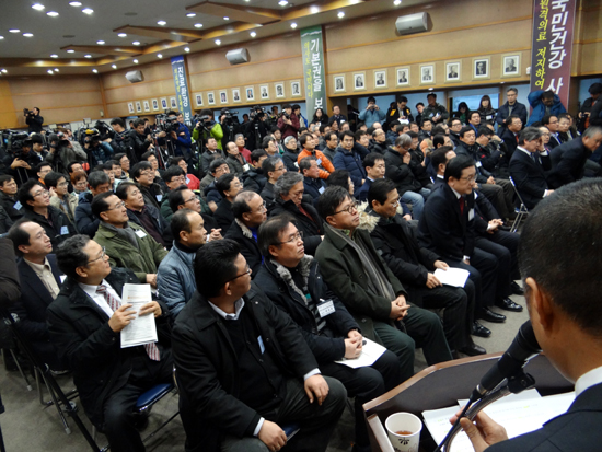 이날 노환규 의협회장 겸 비상대책위원장은 "총파업을 고려하고 있다"며 "정부가 잘못된 제도를 바꾸지 않고, 잘못된 제도를 방치하면서 보건의료전문가 의견을 무시하기 때문"이라고 지적했다.