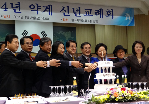 정승 식약처장, 최영현 복지부 실장, 문정림, 신의진 의원(이하 새누리당), 김미희 의원(통합진보당), 조찬휘 대한약사회장, 원희목 전 국회의원, 함문덕 건강보험관리공단 이사, 서영거 대한약학회장, 안정림 대한화장품협회장, 이동호 범부처신약개발단장, 이상석 한국다국적의약산업협회 부회장, 김동연 한국신약개발연구조합 이사장, 이강추 한국신약개발연구조합 회장, 김원배 제약협회 이사장, 이정규 한국의약품수출입협회장 등이 한해 약업계의 행복을 기원했다.