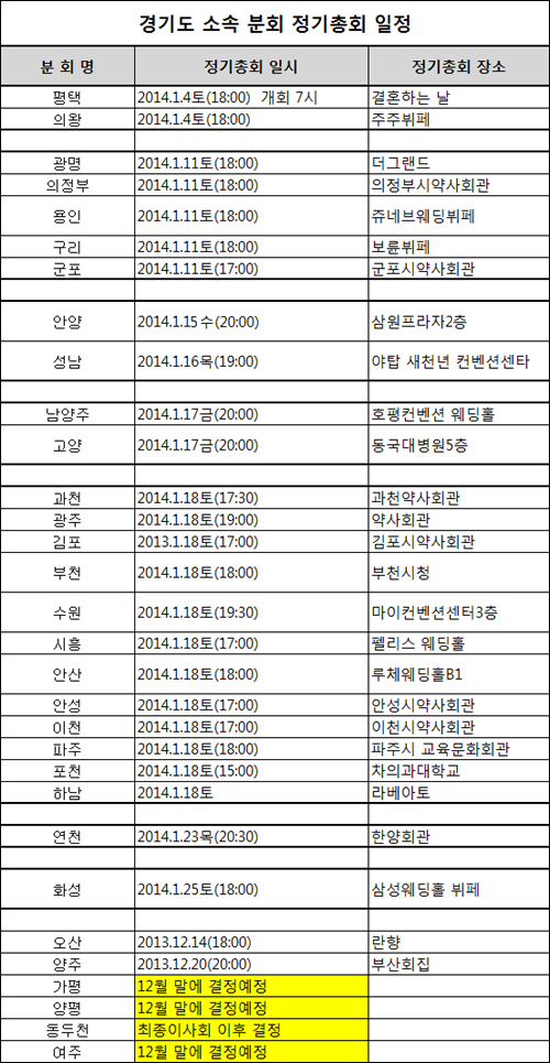 - 서울, 경기지역 분회 정총 일정 잠정 확정
