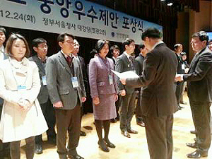 총 17만건의 국민과 공무원들의 정책 제안 중 정 과장의 다문화 가족 복약안내문은 3위, 동상 수상의 영예를 안았다. 지난해 서울시의 희망서울 창의상 에 이어 두 번째 수상이다.