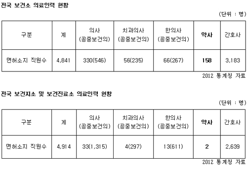 총 4914명에 달하는 보건지소와 보건진료소 의료인력 중 약사는 2명에 그쳤다.