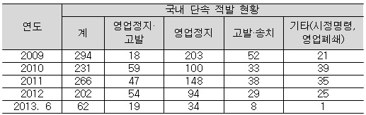 연도별로 2009년 294건, 2010년 231건, 2011년 266건, 2012년 202건, 올해는 62건이 적발됐다.