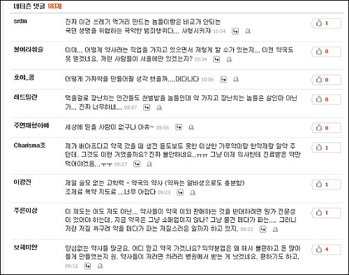 네티즌들은 특히 이번 사건과 관련, 약사와 약국에 대한 신뢰도가 깨졌다는 입장을 제기하기도 했다.