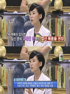 정 약사는 방송에서 "30대 여성에게 가장 결핍되기 쉬운 영양소가 엽산"이라며 "비타민 B군에 속하는 수용성 비타민으로 결핍 시 빈혈을 초래할 뿐 아니라 조산, 저체중아 출산 등에 영향을 미친다"고 조언했다.