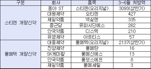 상반기 핫 이슈였던 두 대형품목 개량신약 실적은 이렇듯 희비가 엇갈렸다.