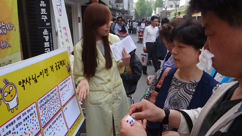 12일 늘픔약사회는 '사람을 만나러 거리로! The 만나다'를 주제로 인사동에서 진행한 캠페인 중 시민 대상 앙케이트 조사를 실시했다.