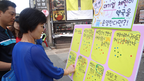이 자리에서 약사들은 질문 패널을 준비해 시민들이 자유롭게 자신의 생각을 스티커로 응답할 수 있도록 했다.