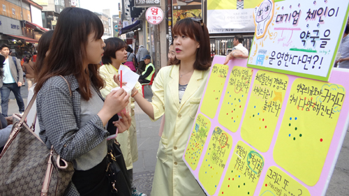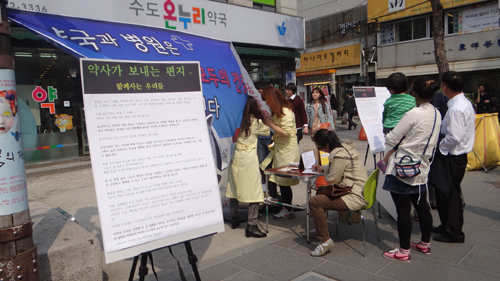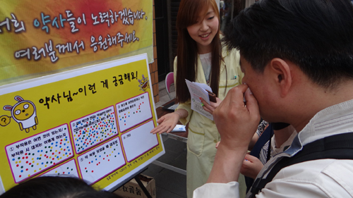 또 약사들은 약국, 병원 의료민영화 일환인 약국 영리법인화에 대해 소개하는 패널과 즉석 설문조사도 진행했다.