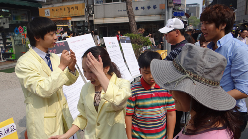 화창한 5월의 봄날, 나들이 나온 가족과 연인, 외국인들로 가득한 서울 인사동 한복판에 가운을 입은 젊은 약사들이 떴다.