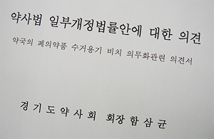 경기도약사회(회장 함삼균)도 김춘진 의원실에 약사법 개정안 반대 의견서를 김춘진 의원실에 제출했다.
