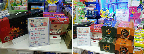 진열 중인 제품은 2만원에서 11만원대 홍삼류 제품들이다.