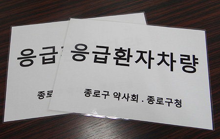 구약사회는 약국 앞 주차단속 문제를 해결하기 위해 '응급환자 차량' 표지판도 각 약국에 배포했다.