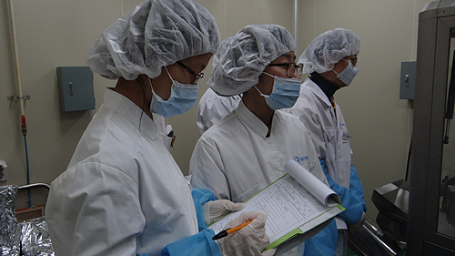 실습 교육은 ▲필름코팅정(Vitamin B plus C) ▲직타형 정제(Vitamin C) ▲캡슐제(복합 비타민 캡슐) ▲과립제(비타민 과립) ▲주사제(리보플라빈 1cc ampule)▲당의정 생산실습으로 구성됐다.
