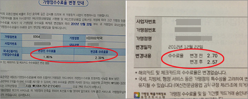 연매출 2억원 이상으로 분류돼 수수료율이 지금(1.8%)보다 높아지는 7만~8만개 가맹점이 대상이다.