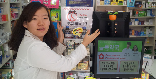 적지 않은 약국들이 대통령선거 투표를 독려하고 나서 주목된다. 19일 제18대 대통령선거를 앞두고 지역 약사들이 투표 참여를 높이기 위해 다양한 활동을 펼치고 있다.