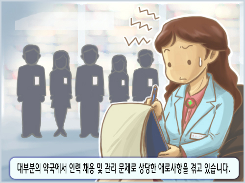대부분의 약국에서 인력 채용 및 관리 문제로 상당한 애로사항을 겪고 있는 것으로 알고 있습니다. 특히 전문성이 가미된 한정된 인력 시장에서 직원 채용 및 관리는 더욱 어렵다 할 것입니다.
